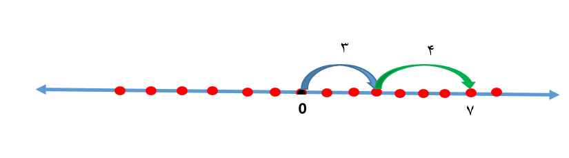 این جمع با توجه به نکات آموخته شده به جمع 4 + 3 تبدیل می شود که به راحتی با استفاده از محور به دست می آید.