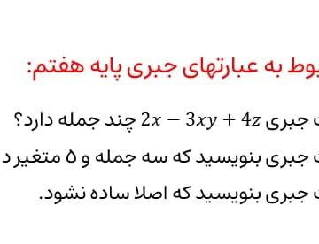 عبارت جبری و چگونگی آموزش آن برای دانش آموزان پایه هفتم